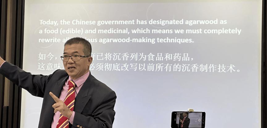 汪科元全情投入连续作了6个多小时的专题分享,大家仍感觉意犹未尽、受益匪浅。本次大讲堂由马来西亚陈劲锭博士统筹并担任翻译。陈博士精通中马沉香文化,其精准的英文翻译为讲座的成功举办提供了有力保障,不仅帮助东南亚各国深入了解中国沉香产业的发展实况,也为中国沉香走向世界、助力“一带一路”建设奠定了多赢的合作典范。