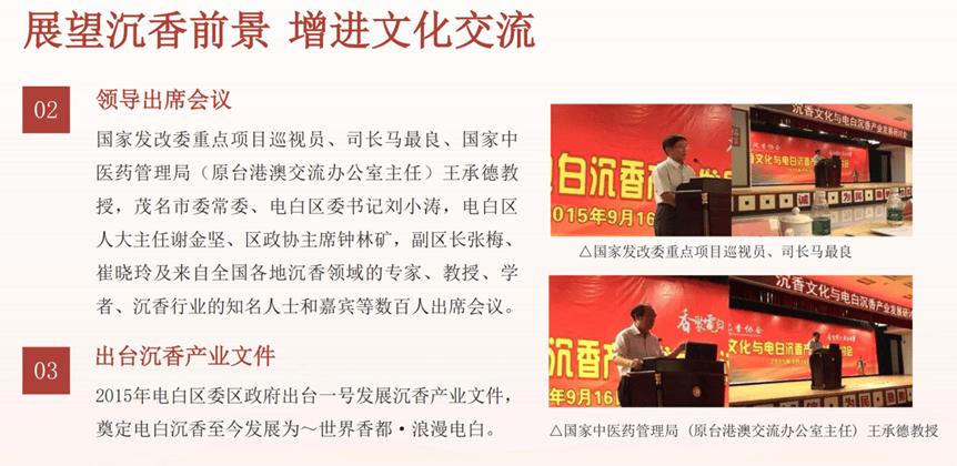 第二篇章:聚焦“电白沉香在原料加工、产品研发、文创设计及制药领域的成功经验”。