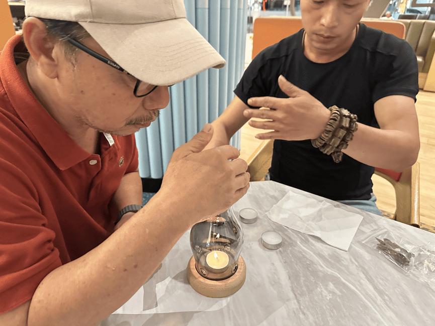 在讲解过程中,一位菲律宾代表提出:“中国奇楠与我们传统认知的沉香有何区别?”这一问题道出了许多参会者的共同疑惑。由于多数代表未曾亲临中国,也未接触过中国奇楠的香气,他们既感好奇,又难以完全信服。汪会长早有准备,结合电白沉香协会常务副会长林勇从国内带来的多种奇楠原料,进行细致讲解,并邀请代表们现场品闻,让大家亲身感受电白沉香的独特魅力。