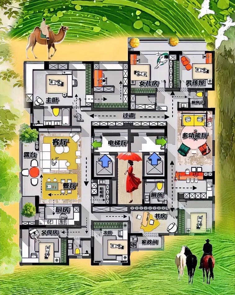 世界小了,布局心大了,有了大格局,大平层才能容万物,也就是说六居室,容得下三代同堂,甚至于四代同堂!