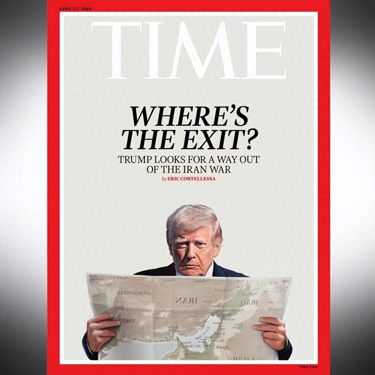 《时代》周刊忍不住讽刺,给了特朗普一个特写封面,老特两眼瞪着地图,琢磨着如何退出战争。标题是“敢问路在何方”。