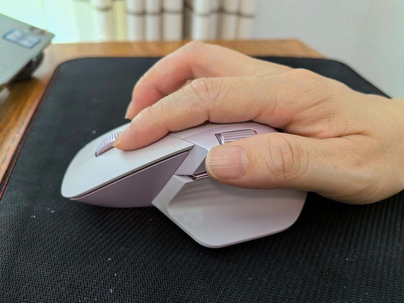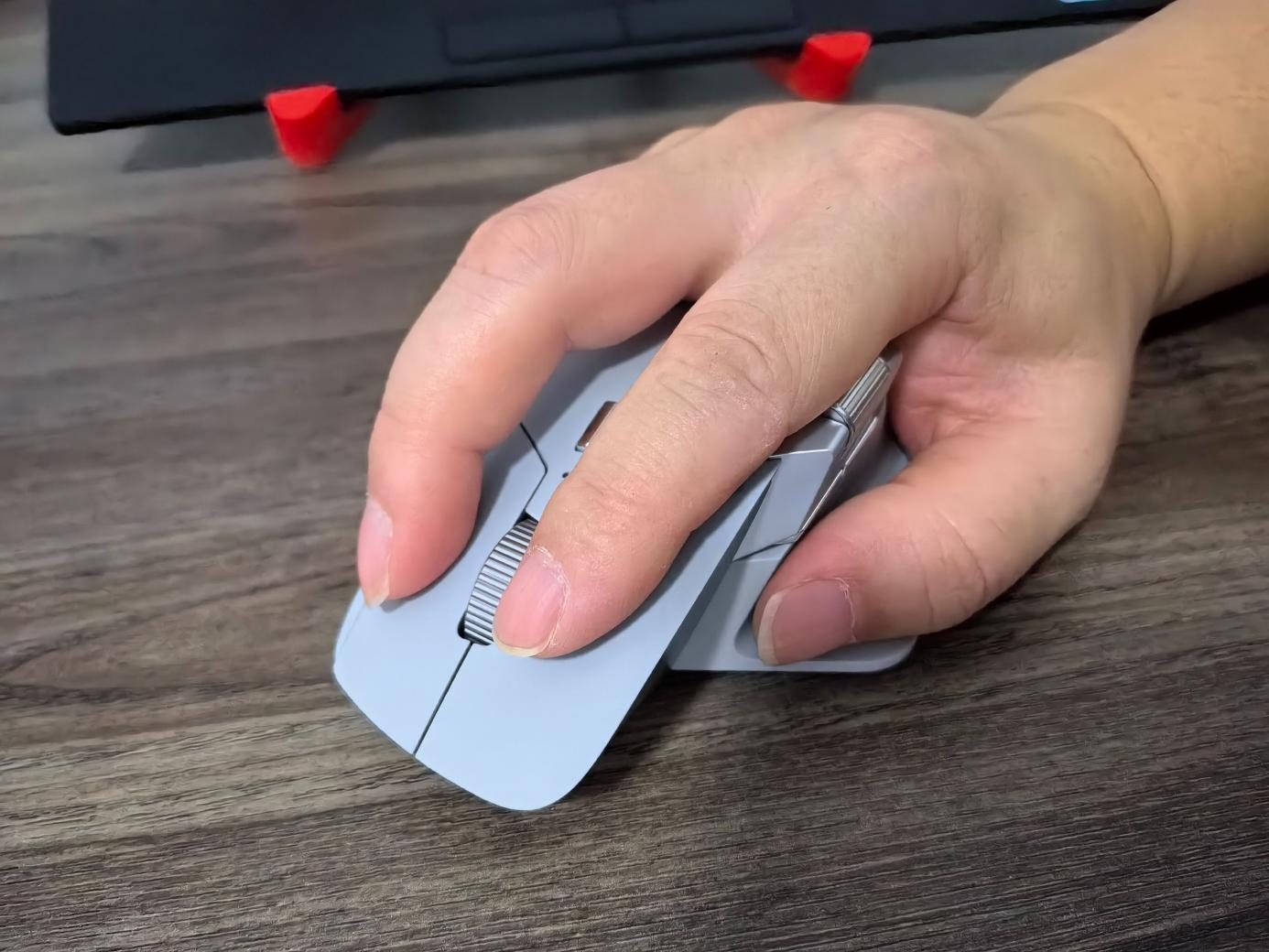 或许是因为MT760系列定位于商务办公的属性,所以在设计上更多考虑了使用上的舒适性。比如左侧拇指延展承托的侧裙设计,让鼠标侧翼充分贴合虎口位置,一定程度上可以减轻手部长时间使用鼠标的不适感。