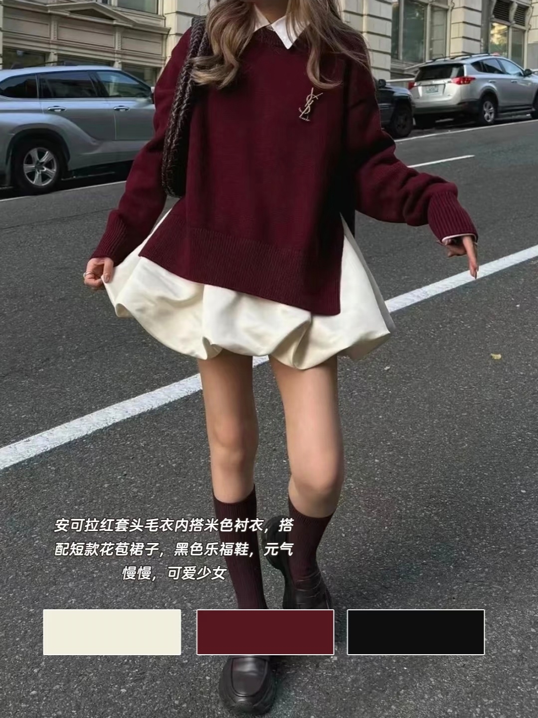 💙安可拉红搭配蓝色:自古红蓝出 cp!这句话真的太对啦😎。红蓝经典撞色,织就秋冬复古时尚画卷。一件可拉红的毛衣,搭配一条蓝色的牛仔裤,再加上一双小白鞋,减龄又时尚。