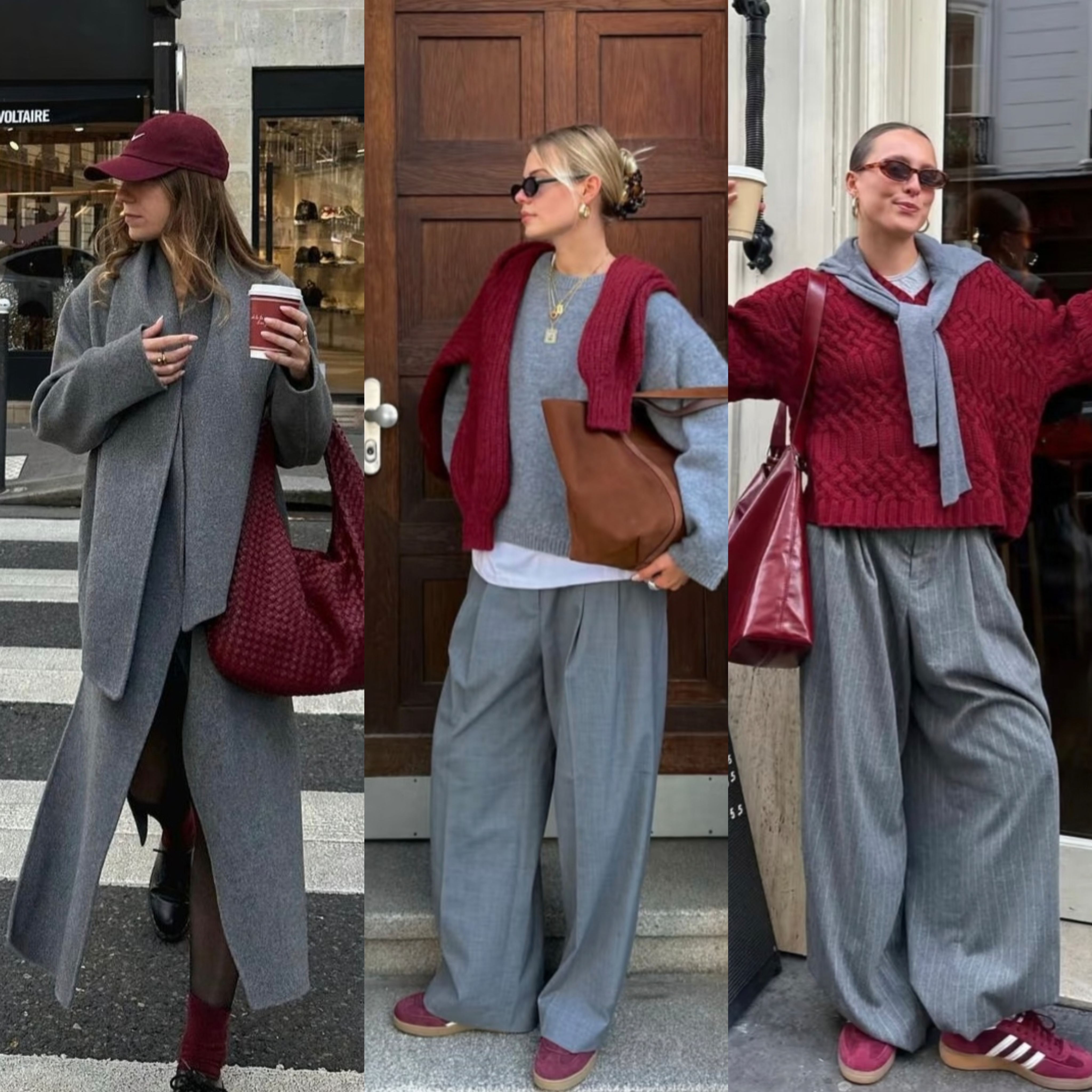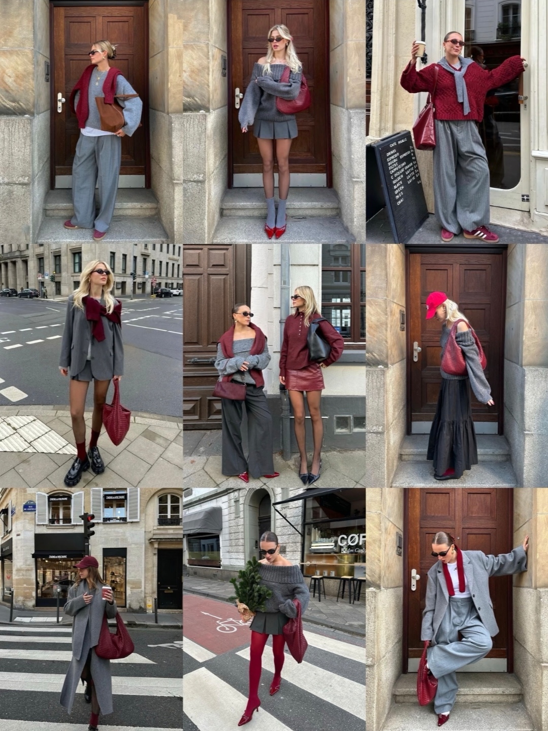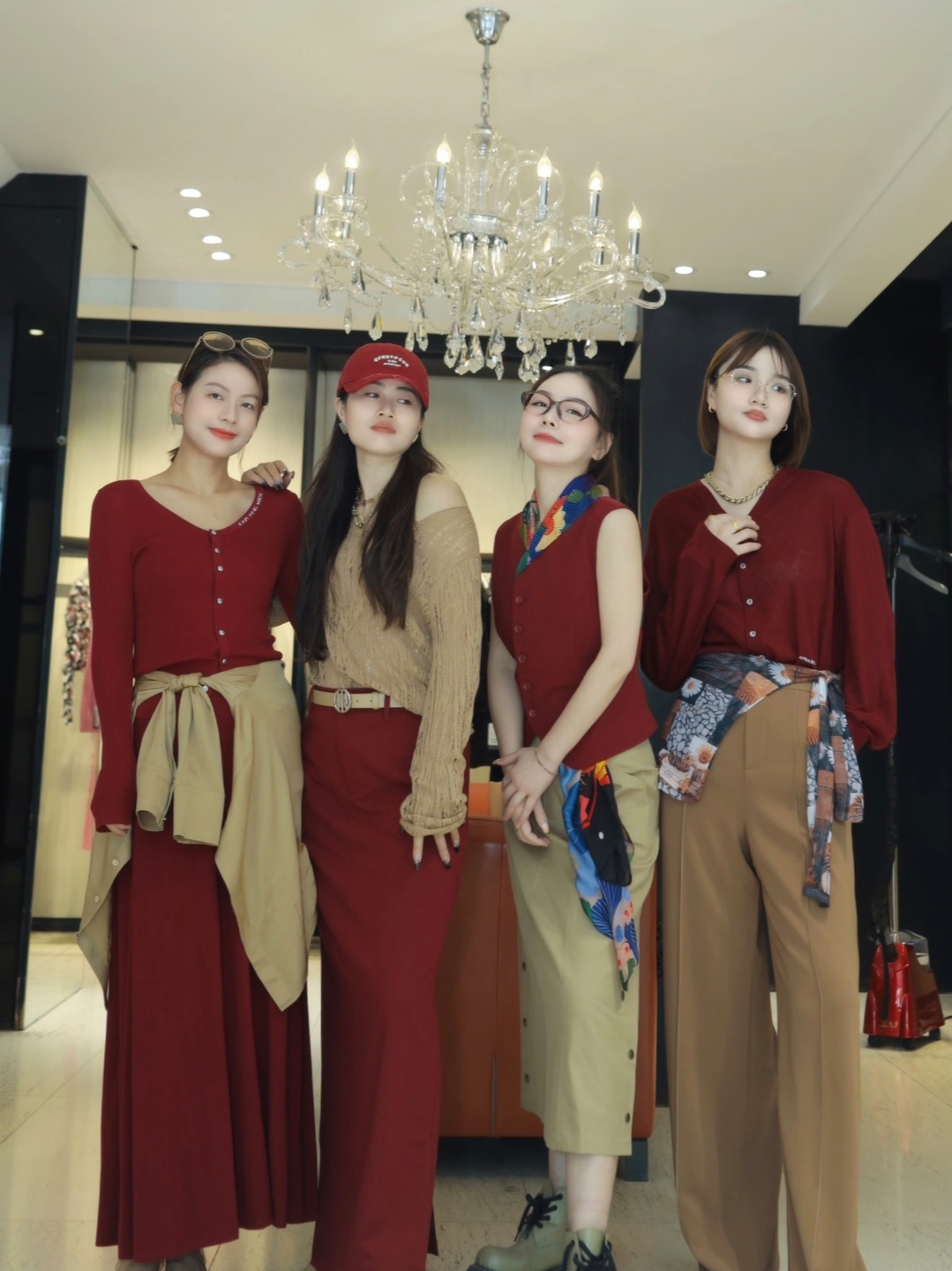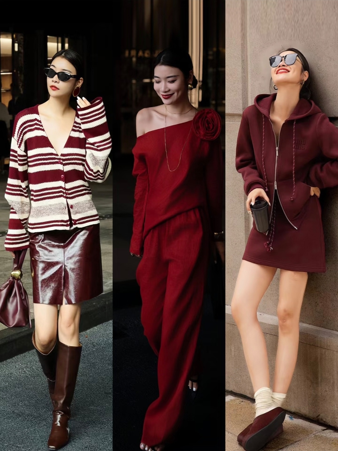 你可以永远相信卡其色+红色,似乎这种带点法式的配色永远不会过时,只是今年从正红🌹变成了更浓郁高智感的酒红色~
