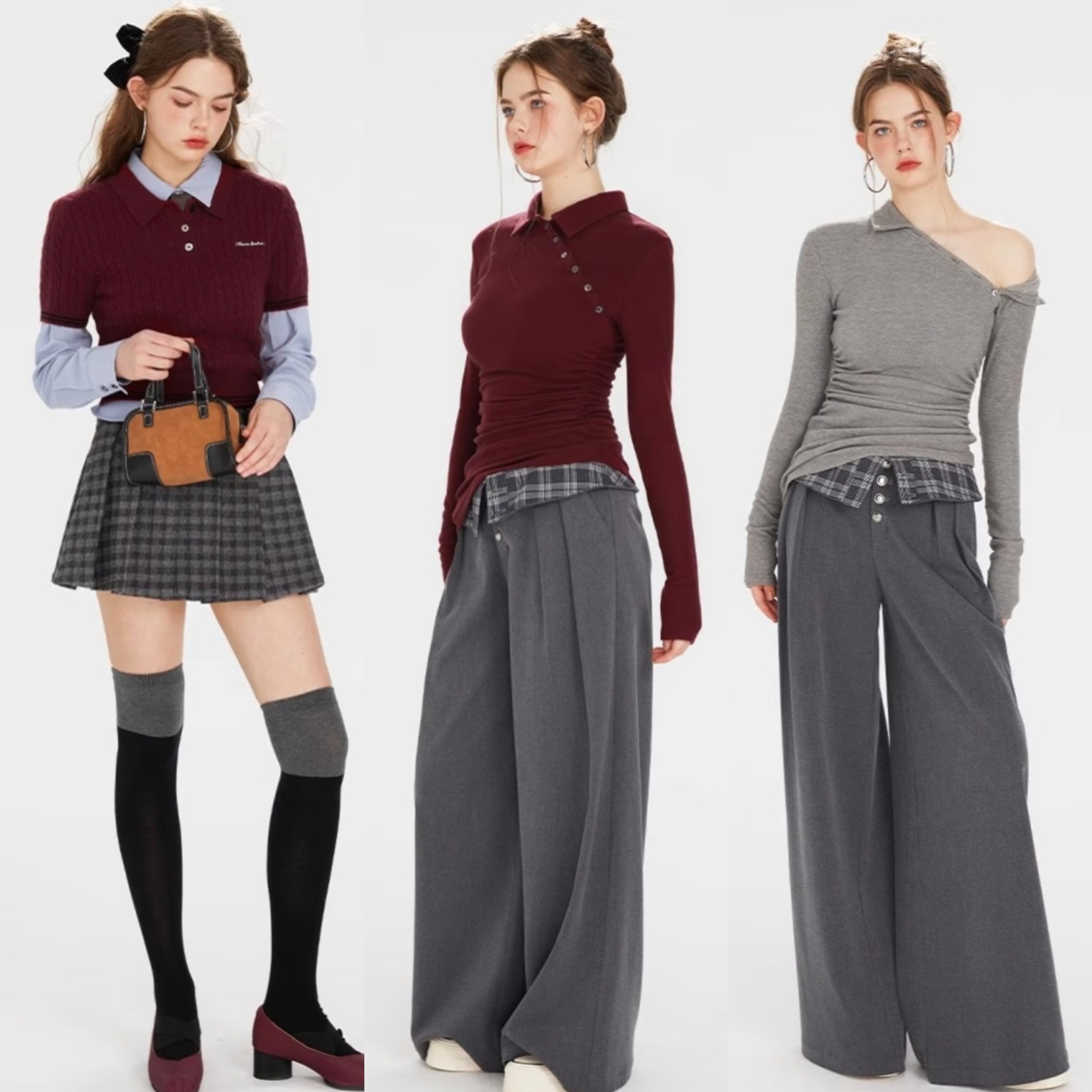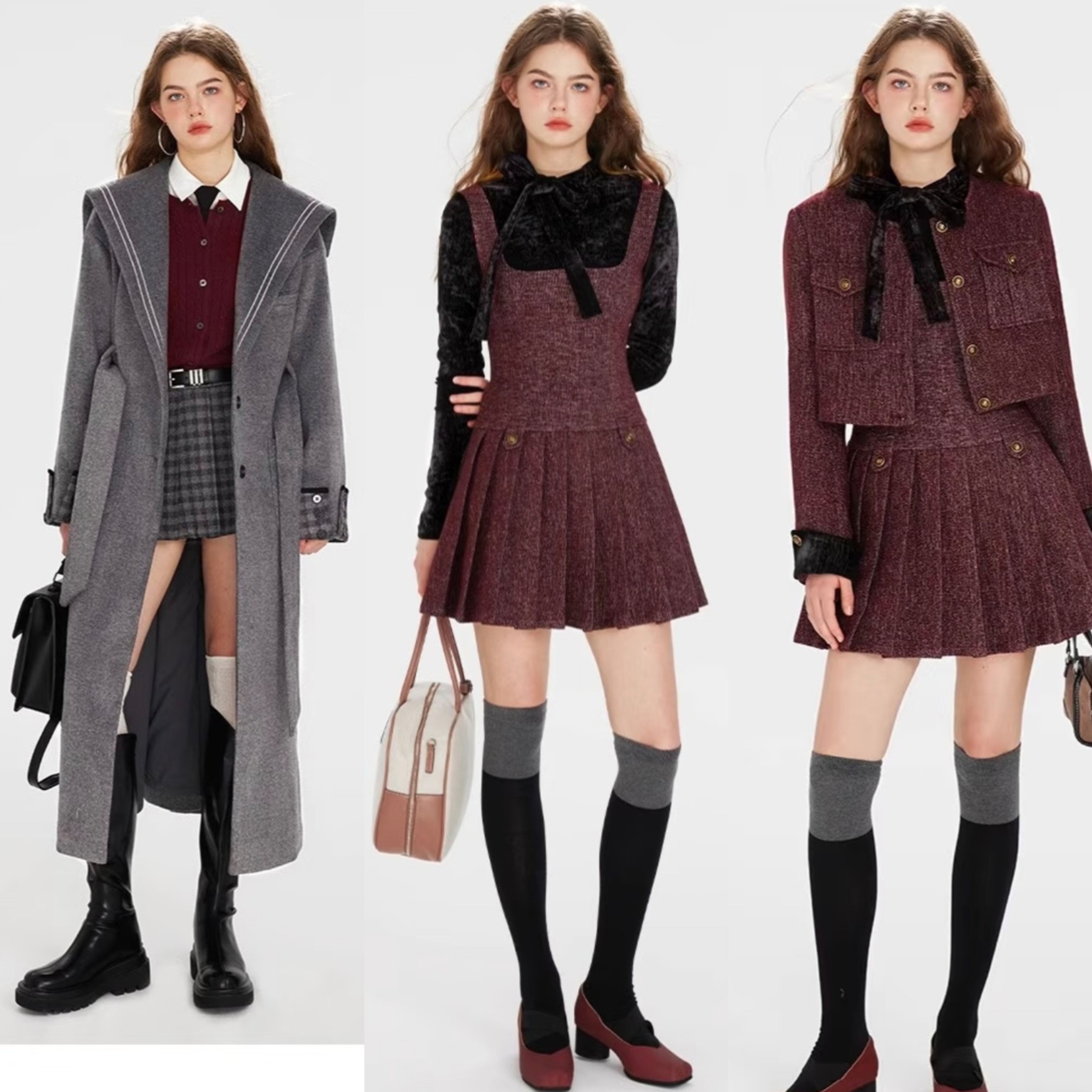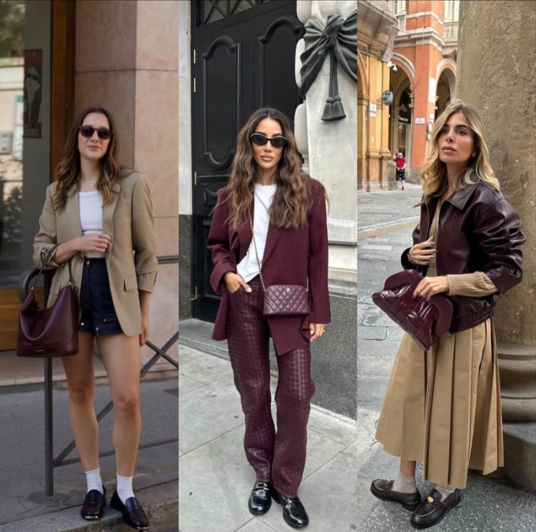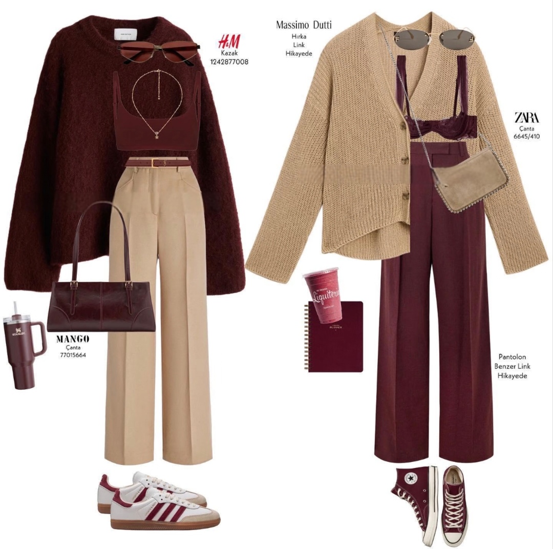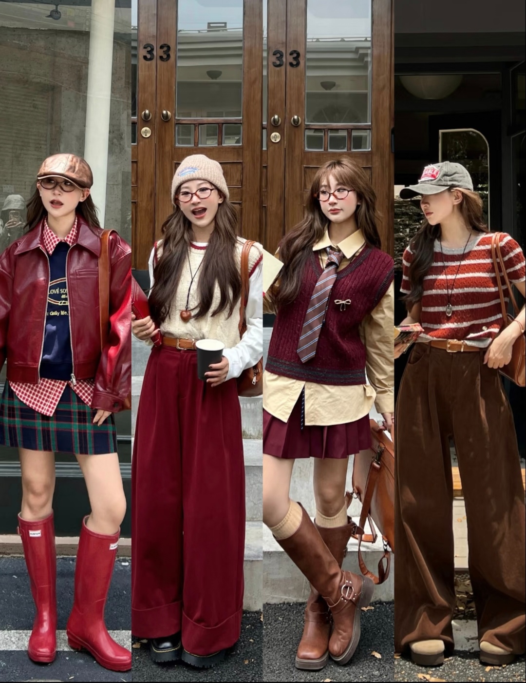 你可以永远相信卡其色+红色,似乎这种带点法式的配色永远不会过时,只是今年从正红🌹变成了更浓郁高智感的酒红色~
