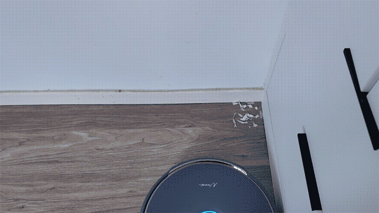 (贴边扫颗粒物,识别到颗粒会自动减慢前进速度,边刷把贴边垃圾清扫出来往复两次,动图)