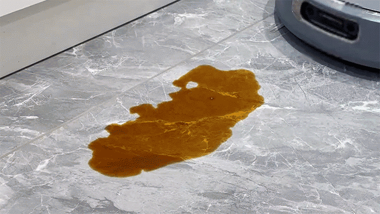 首先,在厨房重污测试中,我们将酱油涂抹在瓷砖上,逍遥002Max在很短时间里完成清洁,地面无残留水印,而传统滚筒机型需回洗多次,耗时更长且仍时不时留有淡淡污渍印,不得不说,热水的存在确实是不可或缺的。