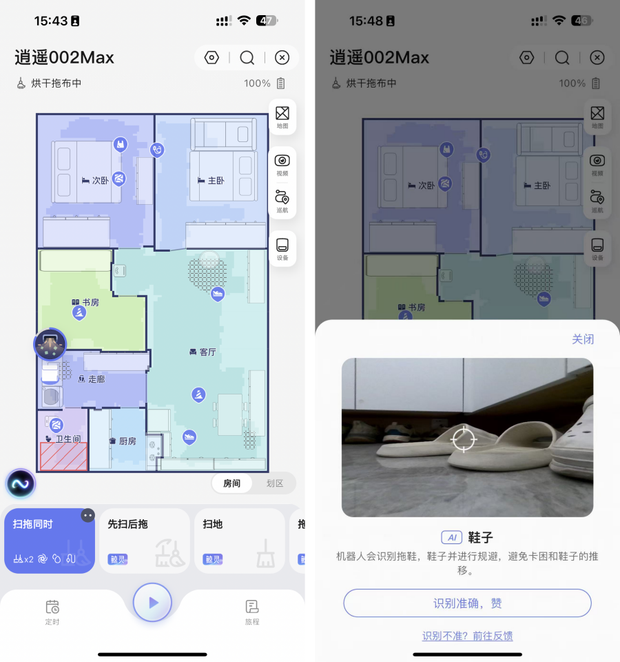强调一下,云鲸是拥有动态脏污识别能力的,这也是它的主动决策能力之一。