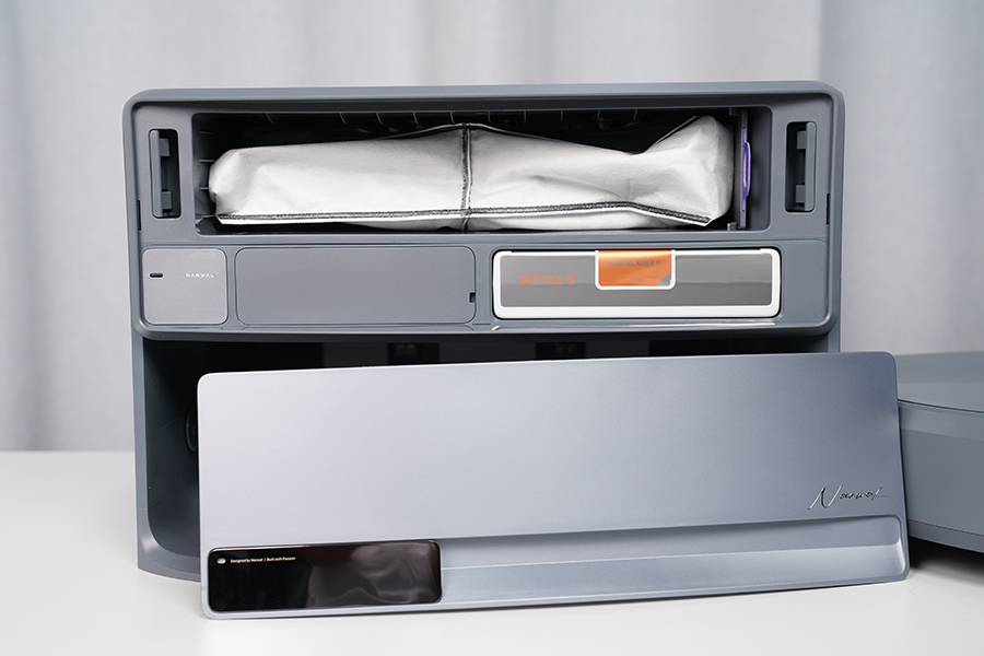 集尘系统同样考虑到长效免维护。采用先烘干再集尘流程,避免潮湿垃圾进入尘袋滋生细菌,尘袋容量达3L,配合防粘涂层管道,可支持120天免倒尘。即使放入猫粮、饼干屑等易腐垃圾,120天后打开尘袋仍无异味,解决了南方梅雨季垃圾霉变的烦恼。