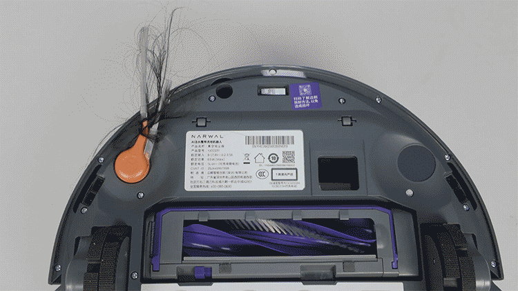 针对养宠/长发家庭的毛发困扰,逍遥002Max的防缠绕设计很有特色。机身反转后,能看到边刷通过外扩解缠机制,工作时从V型合并为Ⅱ型,将角落毛发梳入清洁路径。