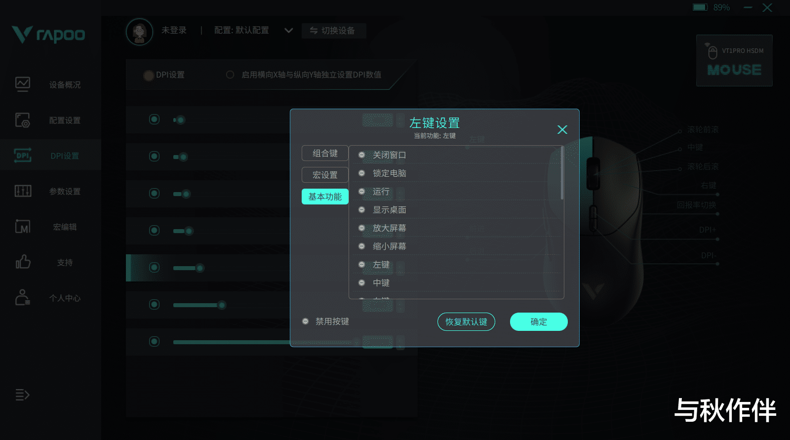 DPI和宏编辑都还是一如既往,其中修改鼠标各个按键设置的功能也放在了DPI设置里。