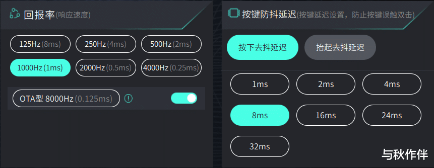 而回报率部分,这款鼠标默认支持有线8K和无线4K的回报率,但是更新驱动后可以开启OTA型8K回报率。不过以我个人的建议,无线4K其实已经很高了,回报率越高边际效应越来越明显,事实上很多人甚至都感受不出4K回报率和1K回报率得区别,比如我。