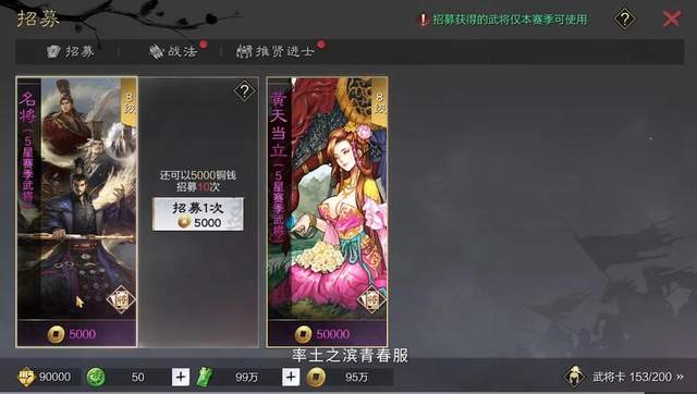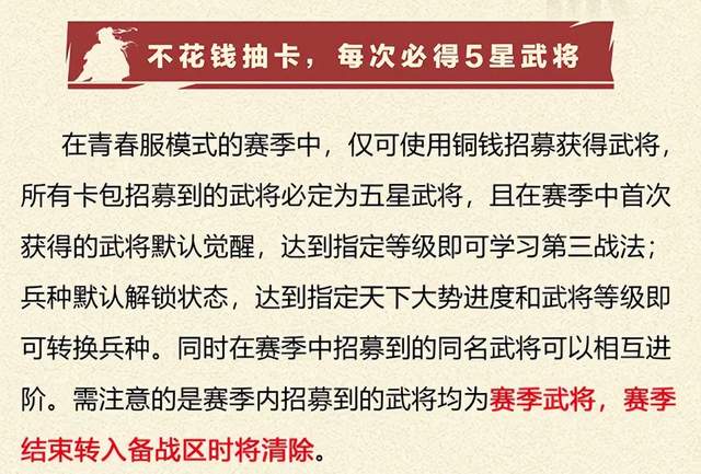 在这一模式中,所有武将均可通过游戏内铜币抽取,且每抽必得五星武将,彻底告别传统抽卡机制中的“狗粮卡”和“凑数将”。无论是刘备、曹操、孙权,还是马超等顶级名将,都能轻松集齐,让每位玩家都能在一个赛季内组建理想阵容,展开真正依靠策略取胜的公平对决。