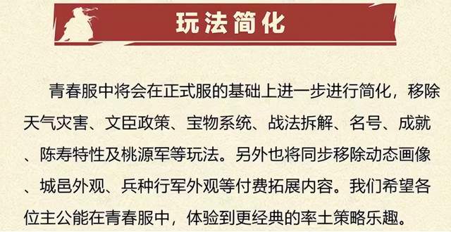 最后,为了提升整体的游戏节奏与策略深度,青春服果断砍掉了文臣、宝物、天气等非核心系统,回归最纯粹的“武将+战法”搭配逻辑。兵种克制、战术布局、同盟协作等策略要素被进一步强化,成为决定胜负的关键所在。这种“减法式”优化不仅提升了新手友好度,也让老玩家得以更高效地投入策略对抗。