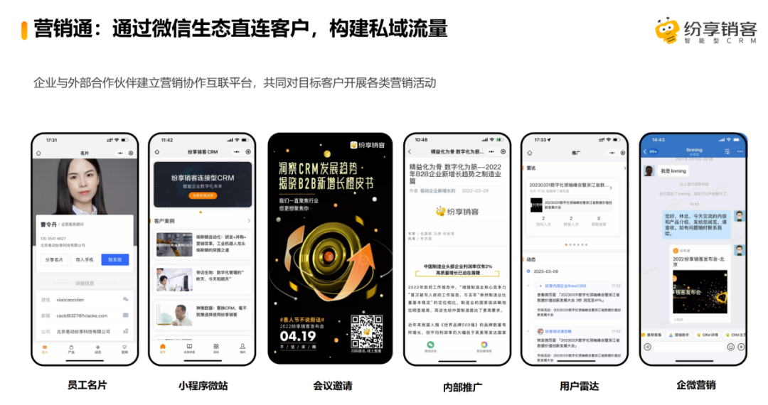 纷享销客智能CRM创领者,中国ToB SaaS CRM的领先品牌。以智能型CRM为特色,通过连接业务、连接人、连接系统,帮助企业实现以客户为中心的,企业内部和上下游业务的高效协作。纷享销客坚持行业深耕战略,为高科技、现代服务、快消、农牧、制造等行业的大中型企业,提供深度行业化的产品、方案和服务,助力企业建设营销、销售、服务一体化、数字化、智能化的平台能力和经营能力。公司创立于2011年,十余年积累,厚积薄发,目前已经为招商局集团、海信集团、神州数码、东软集团、振德医疗、欧普照明、元气森林、好丽友、牧原股份、恒兴集团等6000多家大中型企业提供数字化增长服务。