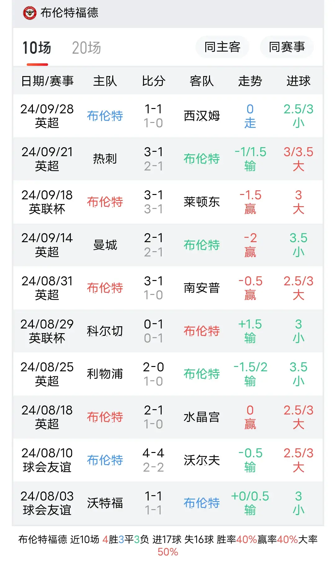 布伦特福德联赛中下球队,该队进攻尚可,防守不稳,目前暂居联赛第12位。
