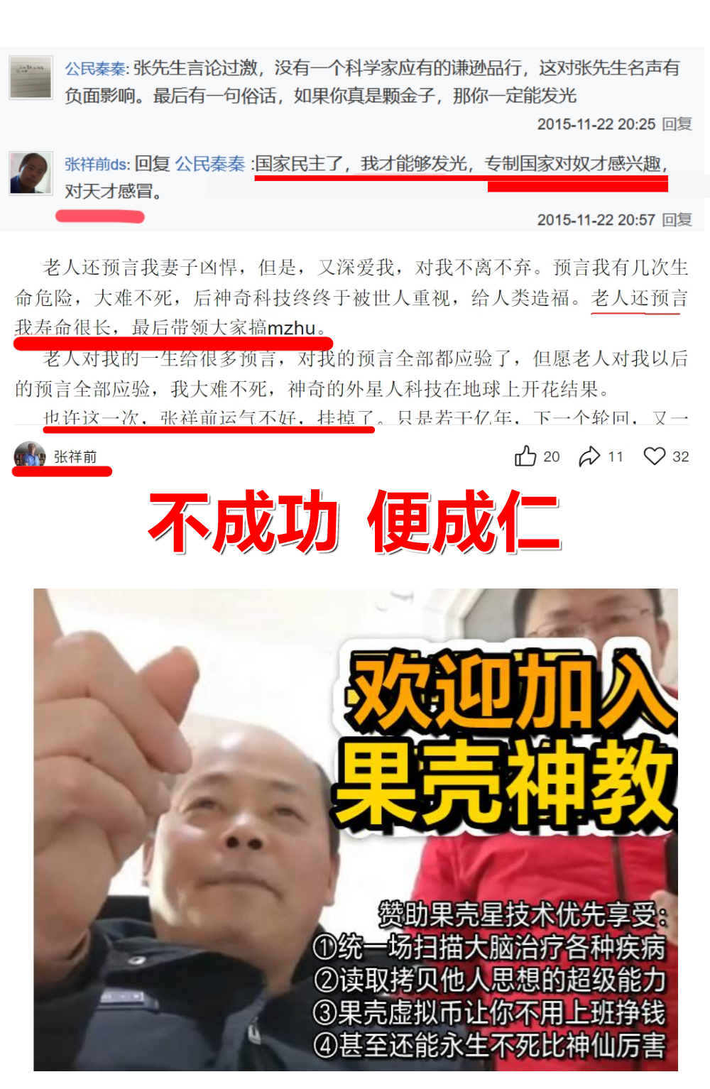 安徽庐江农民张祥前,自称1985年被“果克星”外星人劫持,带回统一场论、人工场等“外星科技”,称能解决能源、医疗、时空操控等问题。