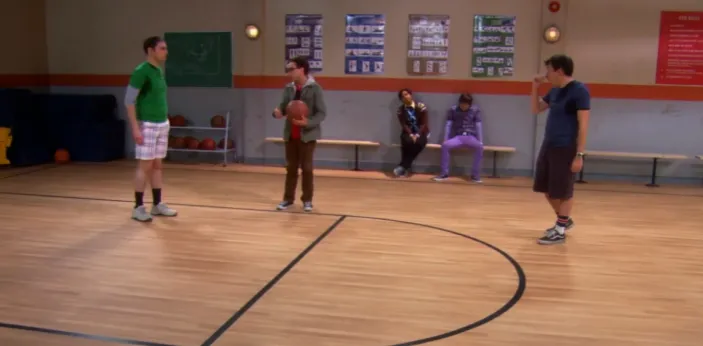 "这集最经典的就是谢耳朵的'分裂现场'——打球前他一本正经说:'运动是低效的能量消耗!',打完球他扶腰喊:'我的费米子都散架了!',刚才哪个说运动等于慢性自杀的?"
