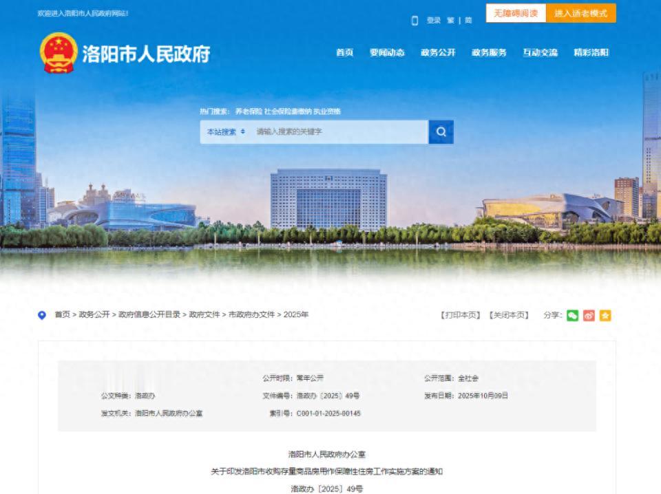 洛阳市人民政府办公室 关于印发洛阳市收购存量商品房 用作保障性住房工作 实施方案的通知 洛政办〔2025〕49号 各县