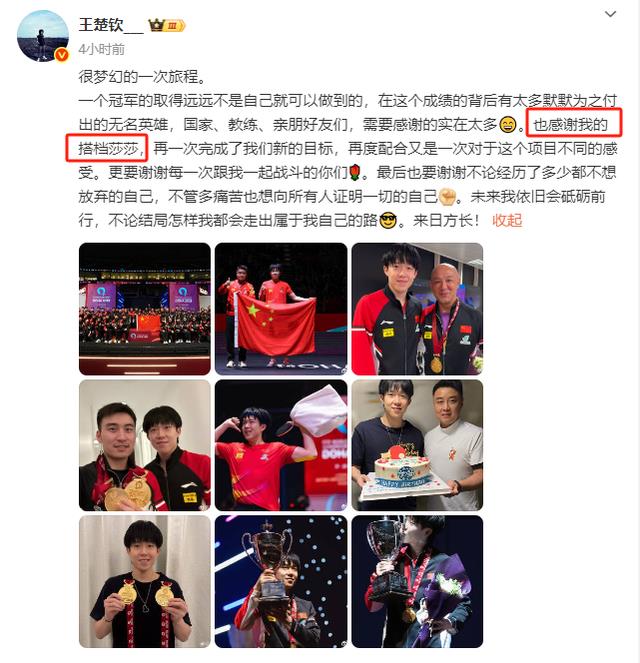 拿下世乒赛双冠后,王楚钦的也是发了“小作文”。