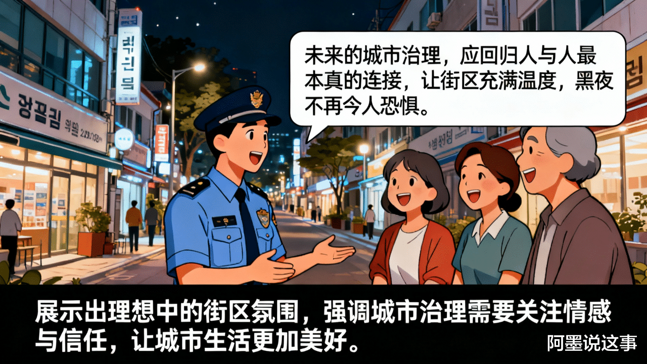 未来的城市治理,不该被光影效果绑架,而要回归人与人最本真的连接:一个会说话的警察、一盏亮堂的路灯、一群守望相助的居民。只有真正让街区有了温度,才能让黑夜不再令人魂飞魄散。