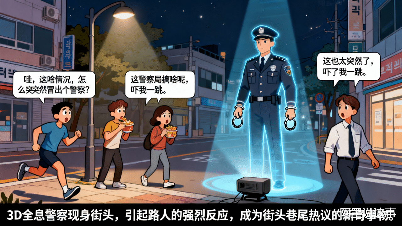 首尔近期有“3D警察”一事并非是科幻剧组弄的临演,而是市警局运用3D全息影像来吓阻犯罪的新举措,初听好似小孩子玩的物件,可背后实则反映出大城市对安全的不安以及对科技的大胆尝试。