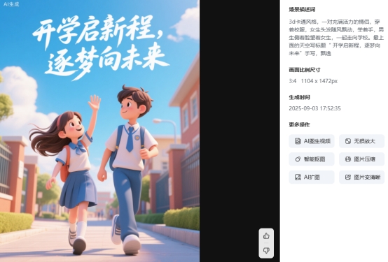 AI文生图:如果你只是单纯的需要一个独特的,极具想象力的海报主图的话,那么使用易可图的AI文生图的话是非常合适的,因为这个功能不需要什么绘画技巧,只需要给AI输入一段描述性的语言就可以得到一幅完全由你想象出来的高原创度的作品,并且还可以直接当做你的海报封面。这样就不用再费心去找各种各样的优质素材了。