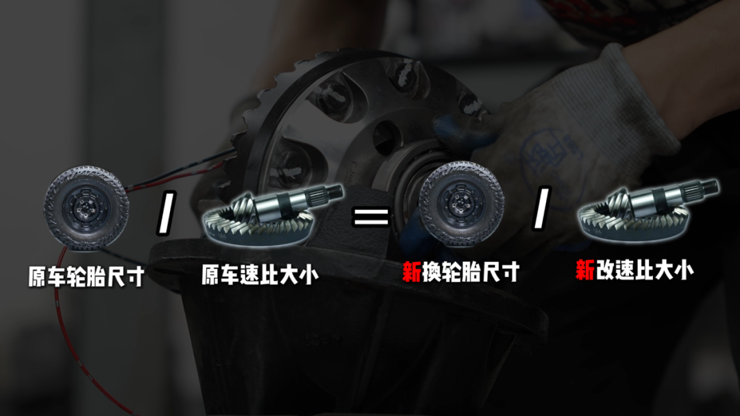 如果想解决这个问题,只需要在改大轮胎的同时改上对应的齿轮比,也就是我们所说的速比即可。