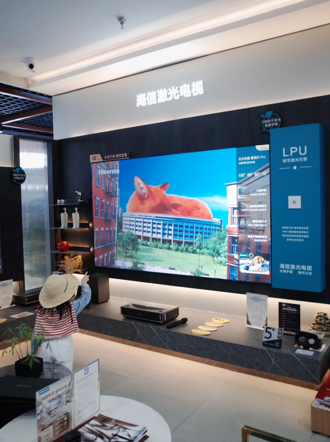 商家说:有了激光电视机就可以打造专属的家庭影院,它比液晶电视机更大屏,更护眼,更有影院的感觉……