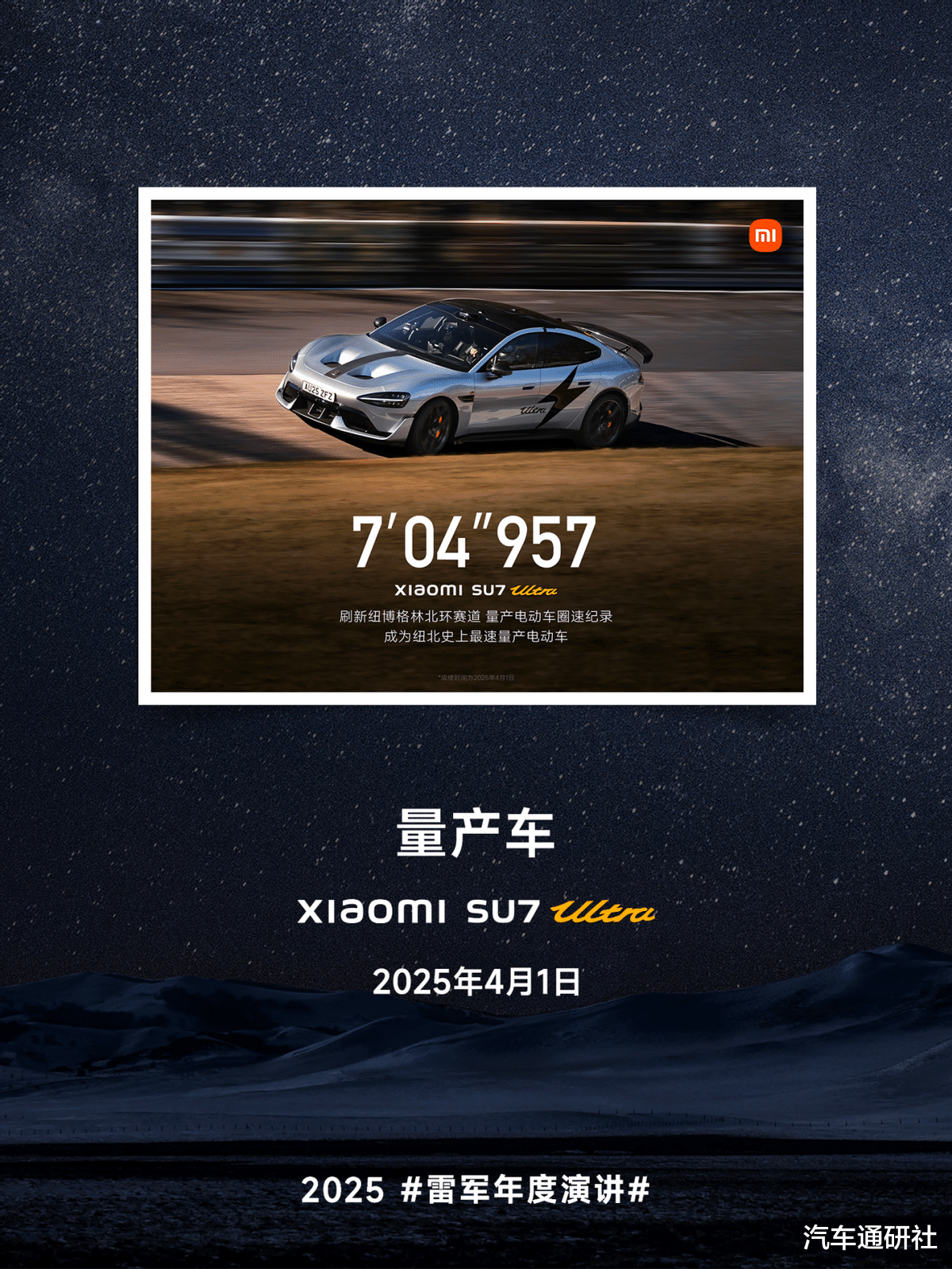 用短短几年时间,让中国车成就纽北传奇,小米SU7 Ultra原型车创纪录、Ultra量产版正用四圈,留下两项震撼人心的成绩。今晚的2025#雷军年度演讲,为我们讲述了小米SU7 Ultra取得风光“战绩”的另一面,是一个关于勇气、热爱和执着的故事。