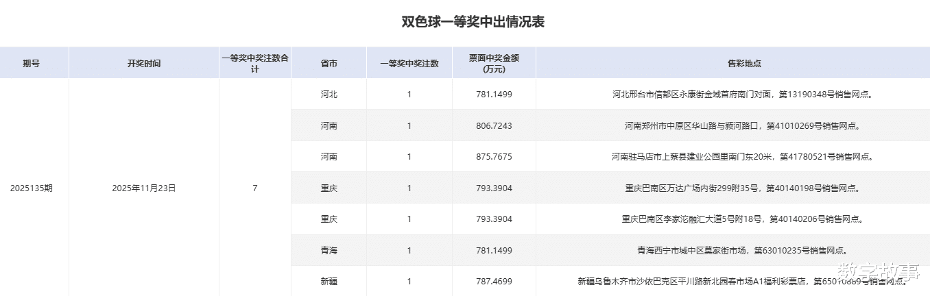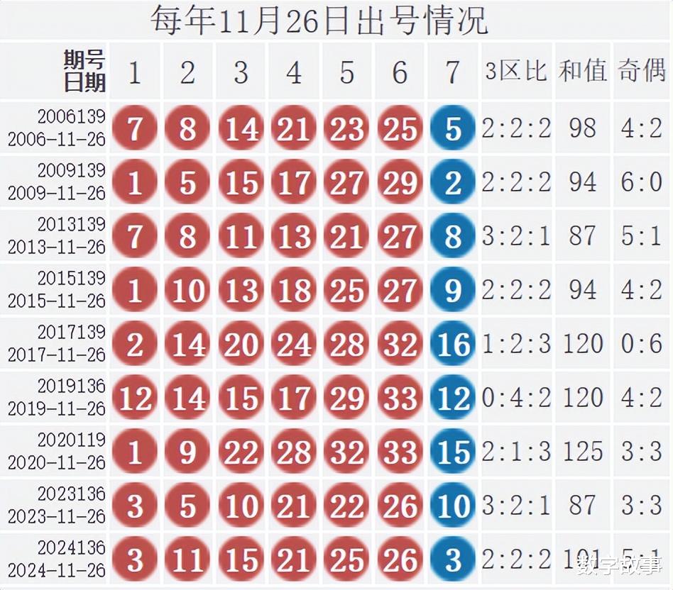 【其他历史数据查询统计】双色球历史上的今天2025-11-26 星期三 双色球不开奖每年11月26日出号情况: