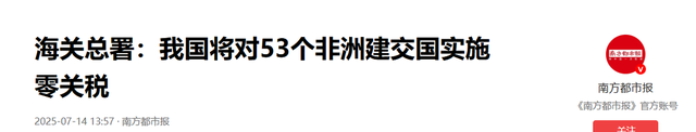 南方都市报——海关总署:我国将对53个非洲建交国实施零关税——2025-07-14