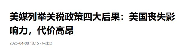 环球网——美媒列举关税政策四大后果:美国丧失影响力,代价高昂——2025-04-08
