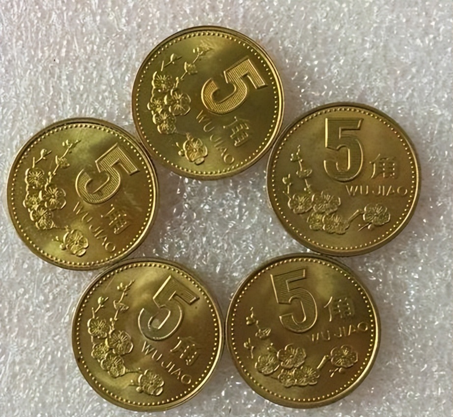 这个梅花五角属于第四套人民币,它也是老三花的一元,从91年开始到01年结束,一共11年的时间,它的做工比较精美,用料是采用进口黄铜,所以市场上对这个五角硬币比较看好,话题也比较多,值得一提的是2000年发行了梅花五角没有对外发行,和2000年的菊花一角装帧成册,以礼品的形式送人的,
