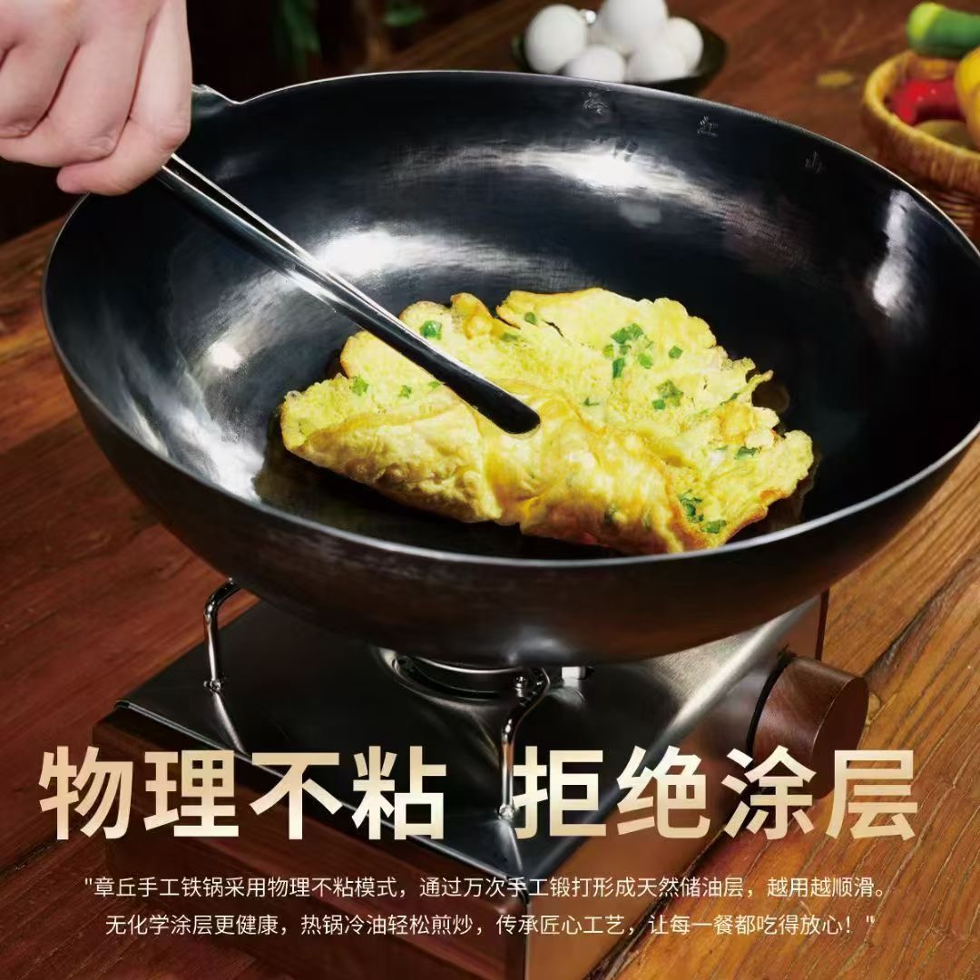 每一道锤印不仅是匠人的手艺印记,更是铁锅“呼吸”的微孔——它们将在使用中与油脂融合,形成天然的物理不粘层,无需化学涂层加持,便能实现煎鱼不破、炒菜不粘的效果。这种源于自然的智慧,让烹饪回归健康与本真。中式烹饪讲究“锅气”,追求大火快炒中食材与热力的瞬间交融。手工铁锅的厚薄均匀与导热迅捷,恰好契合这一需求。热量迅速传递至每一寸锅壁,食物受热均匀,锁住水分与鲜香。无论是爆炒时的烟火升腾,还是慢炖时的汤汁翻滚,铁锅始终以稳重的质感包容着千般滋味。