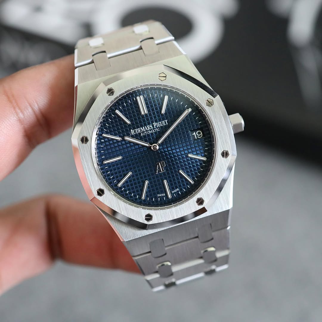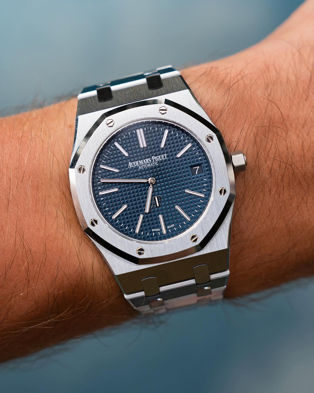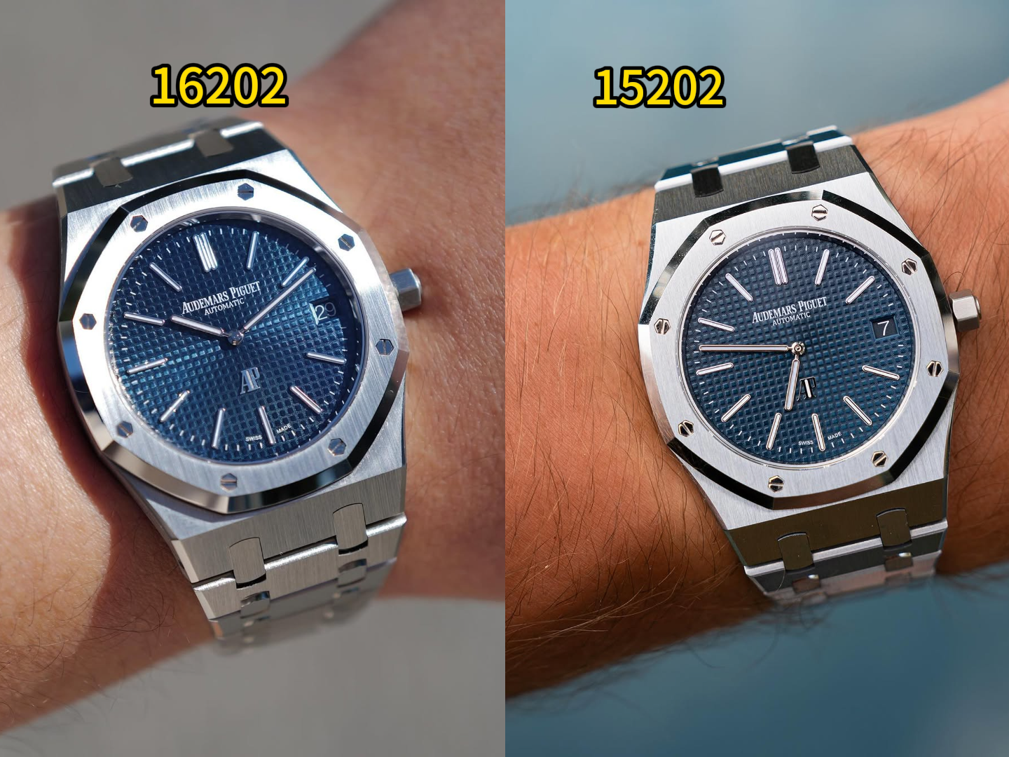 那其实皇家橡树的15202,对于亚洲人来讲,才是真正的爱彼钢王,它的表径是39,而且厚薄度才8.1,更能够适配中国人的手腕,以及审美,因为像15400、15500虽然看上去产品更新,但是它也更大更厚,对大部分亚洲人来讲,不太友好,适配性也不如15202来得那么好。