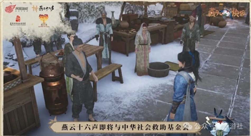 在武侠世界中,“侠义”二字不仅意味着大侠们之间的恩怨,它所承担的更是扶危济困、拯人于水火之中的精神内涵。而如今,这份精神正从虚拟的武侠世界中走出来,用它温暖的大手握住每个需要帮助的人。早在5月20日的网易发布会上,燕云十六声便公布了后续线上的三大联动内容,除了和敦煌画院、中央民族乐团的宣传联动外,还将与中华社会救助基金会“银天使计划公益项目”携手,以全体玩家的名义,向甘肃的兰州、武威等地区的孤寡、特困等困难老人提供为期半年的定向帮扶。