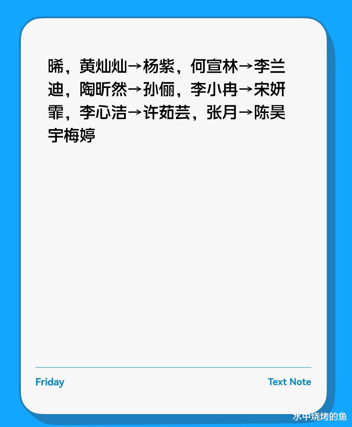 唐艺昕和陶昕然同时出现在名单上,舞台上的瓜六和安陵容谁看了不迷糊,脑海里已经自动响起了《甄嬛传》的BGM。