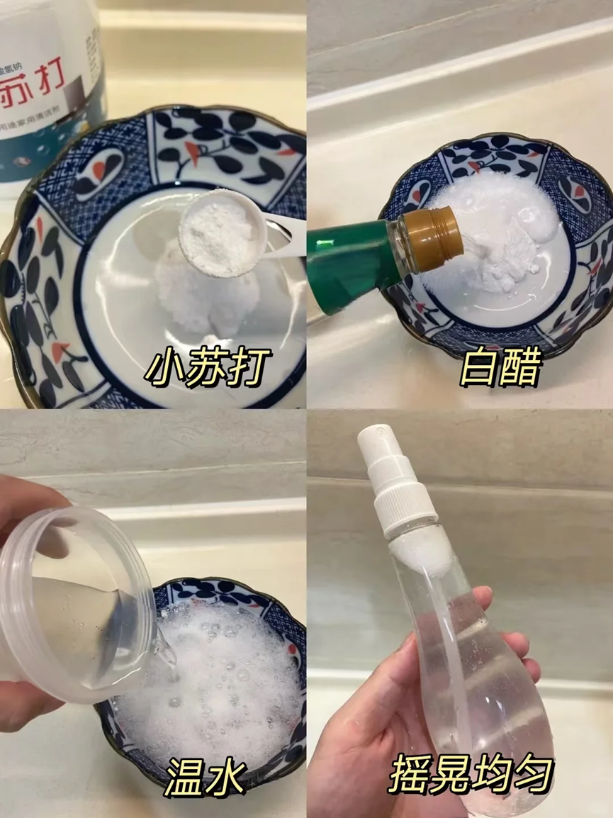 我买了很多的清洁剂,效果都不是很好,后来婆婆告诉我直接是用小苏打、白醋和洗洁精就可以了。