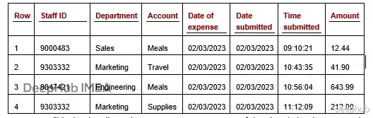 员工费用表里,每个员工基本固定在一个或少数几个部门。每个部门有特定的费用类型和金额范围。费用发生和提交之间有时间差,等等。