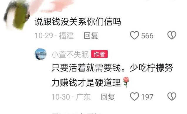 “说跟钱没关系你们信吗”,这条评论的热度飞涨,冲上了评论区的顶部。