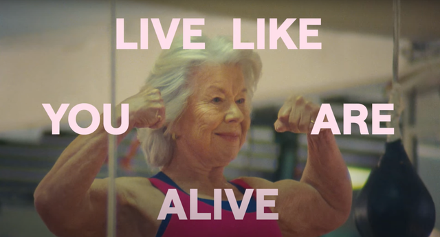 Lululemon在妇女节推出的广告片,则是邀请到了78岁的健身达人Joan MacDonald,用她70岁开始健身并找回活力的真实故事,激励消费者们也加入其中,并拥有更加积极的生活态度。