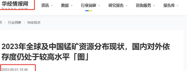 3.华经情报网:《2023年全球及中国锰矿资源分布现状,国内对外依存度仍处于较高水平「图」》-2023-8-1