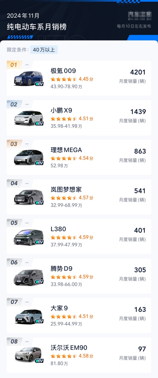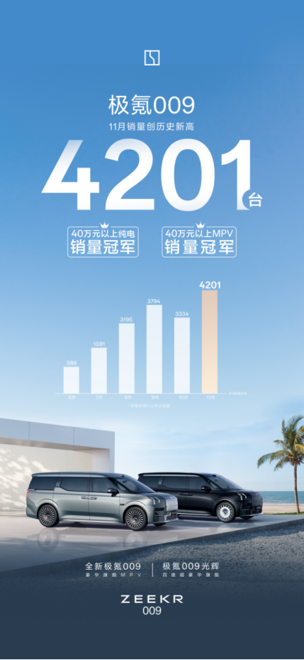 #豪华mpv只有009和其他#这句话的含金量还在增加!11月销量高达4201台实现断层领先,妥妥的高端纯电第一番位