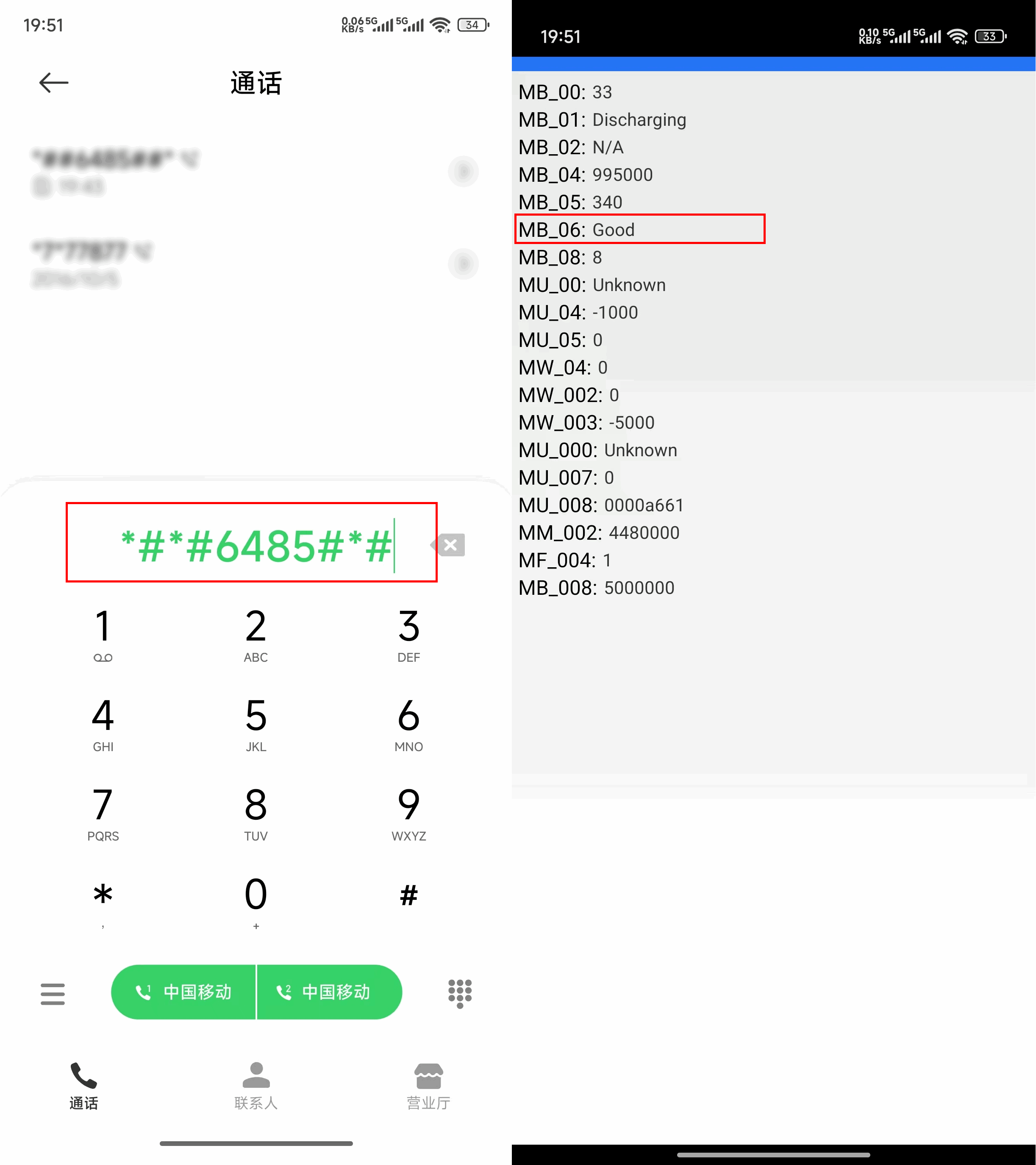 ✅ 方法二:在拨号界面,输入*#*#6485#*#* 字符小米手机有一个隐藏的“工程模式”,能查看更详细的电池数据: