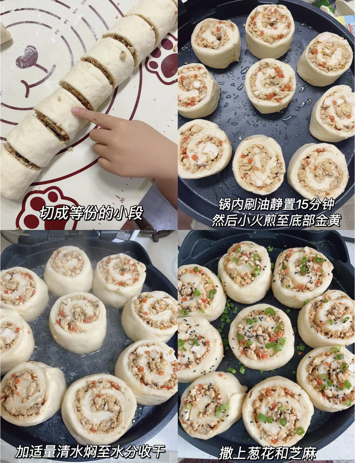 煎至两面都金黄酥脆后,加入适量清水,盖上锅盖焖煮几分钟,让内部的馅料充分吸收水分变得软嫩。