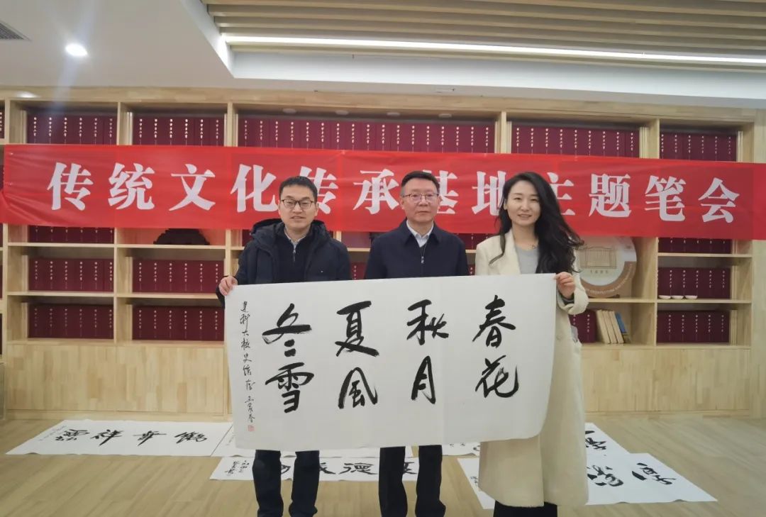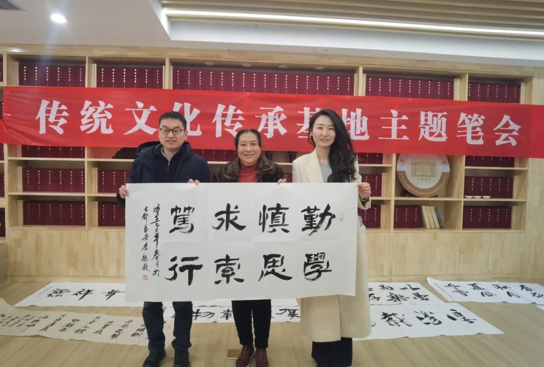 陕西省书协原常务副主席、陕西省传统文化发展促进会书画委副主任李艳秋,陕西书画艺术研究院院长、陕西省传统文化发展促进会文化艺术顾问陈宏,陕西书画艺术研究院名誉院长,陕西省书法家协会对外交流委员会副主任张德勇等,在西安建筑科技大学校史馆举行了传统文化主题笔会。陕西省散文学会副会长、陕西省传统文化发展促进会常务理事史飞翔,陕北民歌非遗传承人、中国音协陕北民歌研究会理事屈旺旺,陕西省音乐家协会会员、中国音协陕北民歌研究会理事延锦园,川剧变脸传承人、陕西省传统文化发展促进会理事刘彬,陕西省传统文化发展促进会副秘书长王新妮,以及西安建筑科技大学各位老师、同学代表等三百余人出席了揭牌仪式。