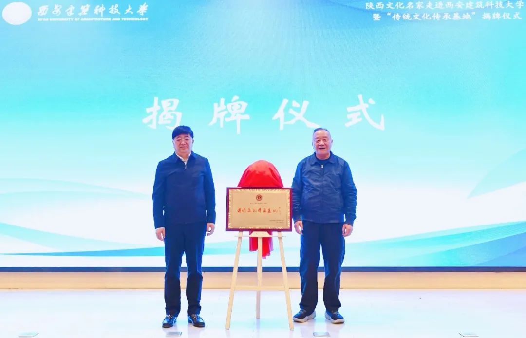 陕西省人大常委会原副主任邓理、西安建筑科技大学党委书记朱晓渭共同为“传统文化传承基地”揭牌