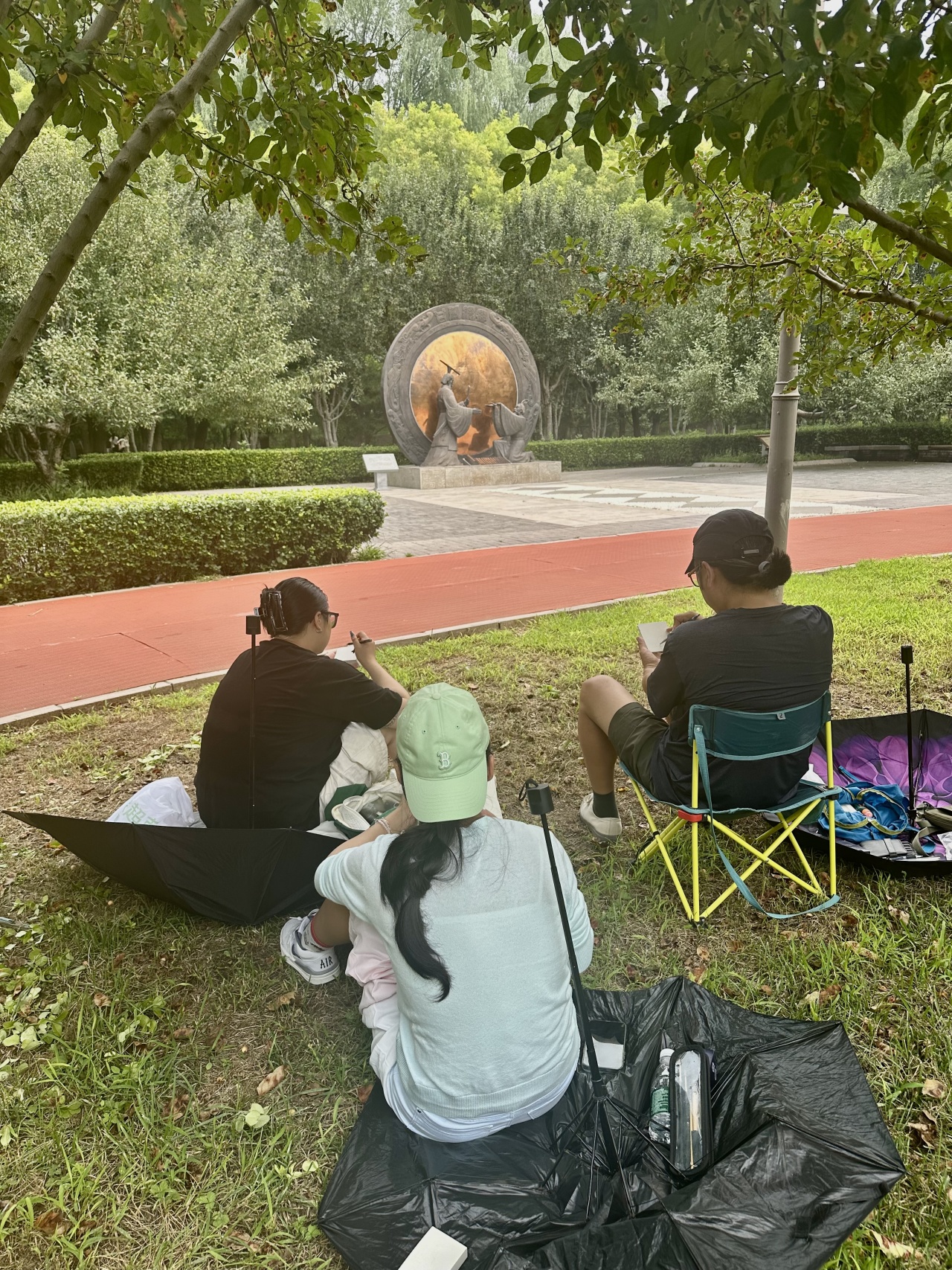 在运河清风廉政公园,几组以“廉”为主题的雕塑成了写生的焦点。一尊“甘棠镜鉴”雕塑静静立在草坪上,来自通州的画家孙在峰带领着他的两位学生蹲在雕塑前,用速写本快速记录着雕塑的形态,“以前总觉得‘廉政’是抽象的词,看到这些具体的雕塑和故事,才明白它藏在生活的细节里。”他的画里,雕塑旁多了几株向上生长的竹子,“竹有节,人亦当有节,这是我想加的一点小心思。”