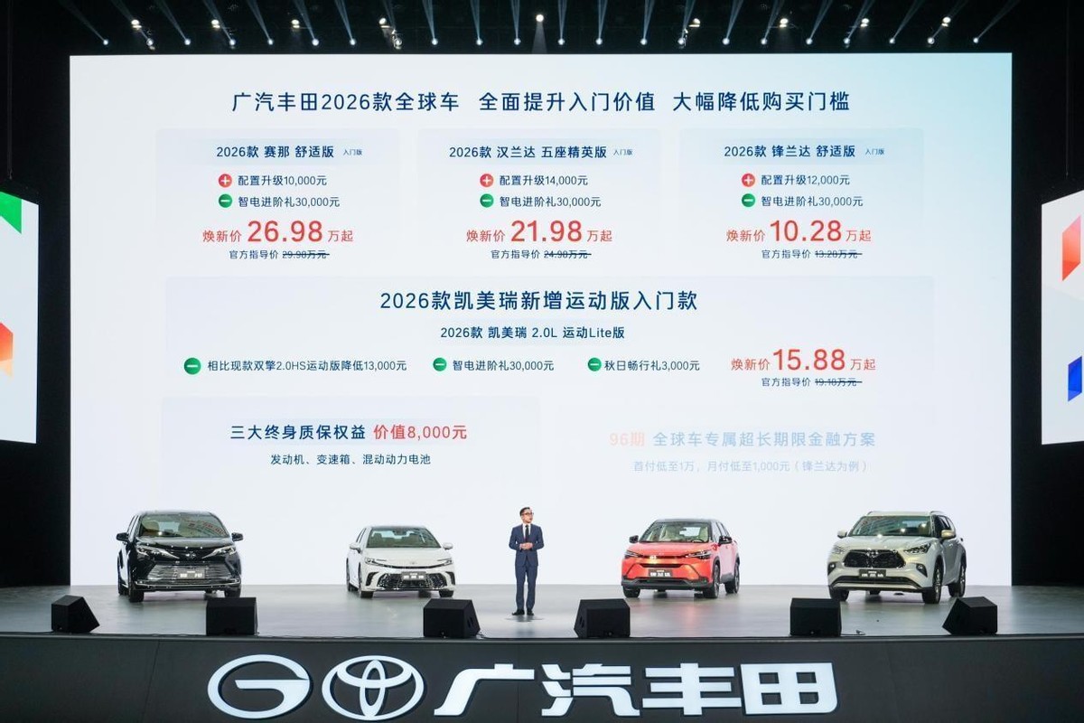 9月23日,广汽丰田在长沙举办了2026款丰田全球车发布会,没有枯燥的技术术语,没有单向输出的产品宣讲,而是用一场轻松甚至略带“自嘲”的发布会,完成了对赛那、汉兰达、凯美瑞、锋兰达四款全球车的集中焕新。